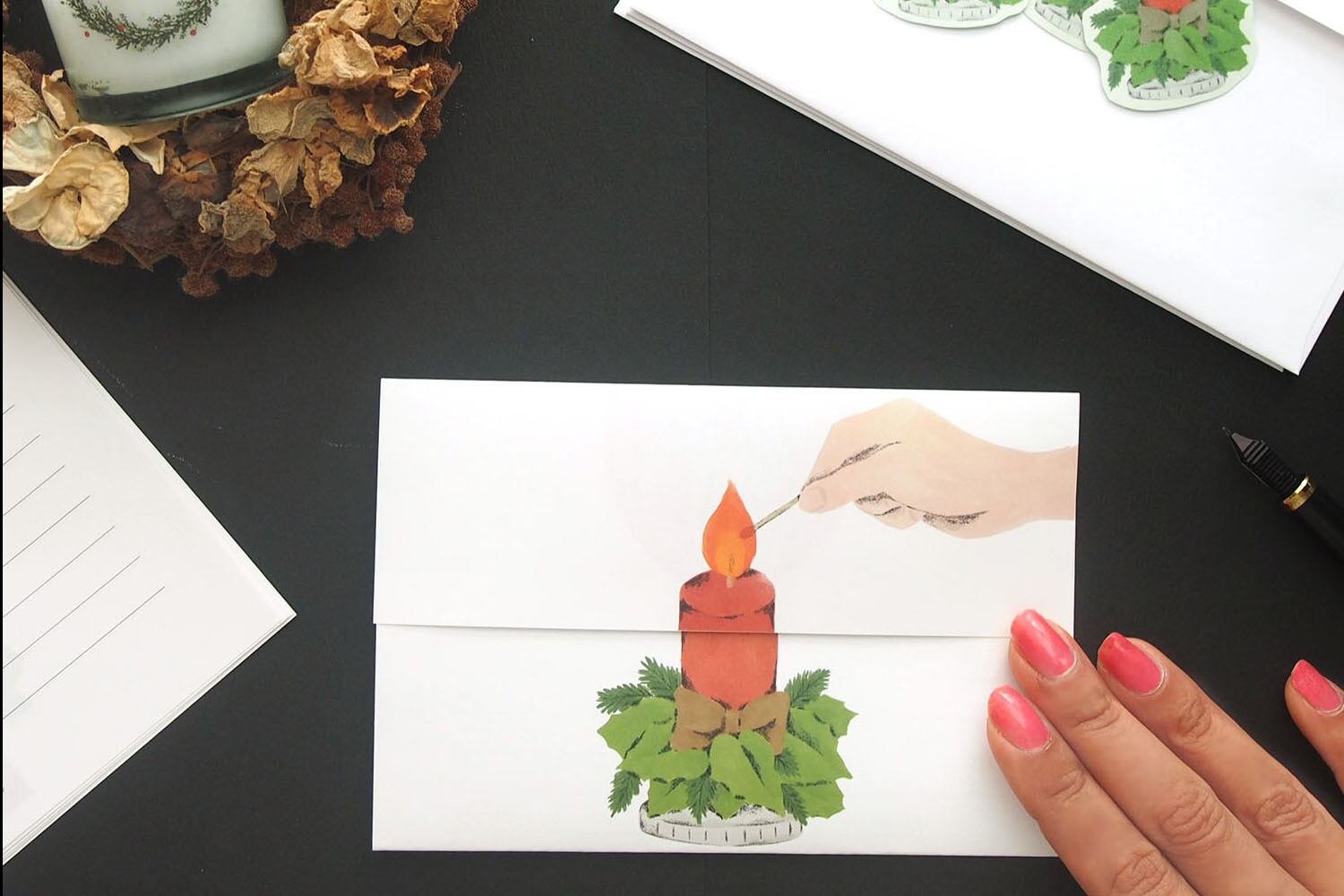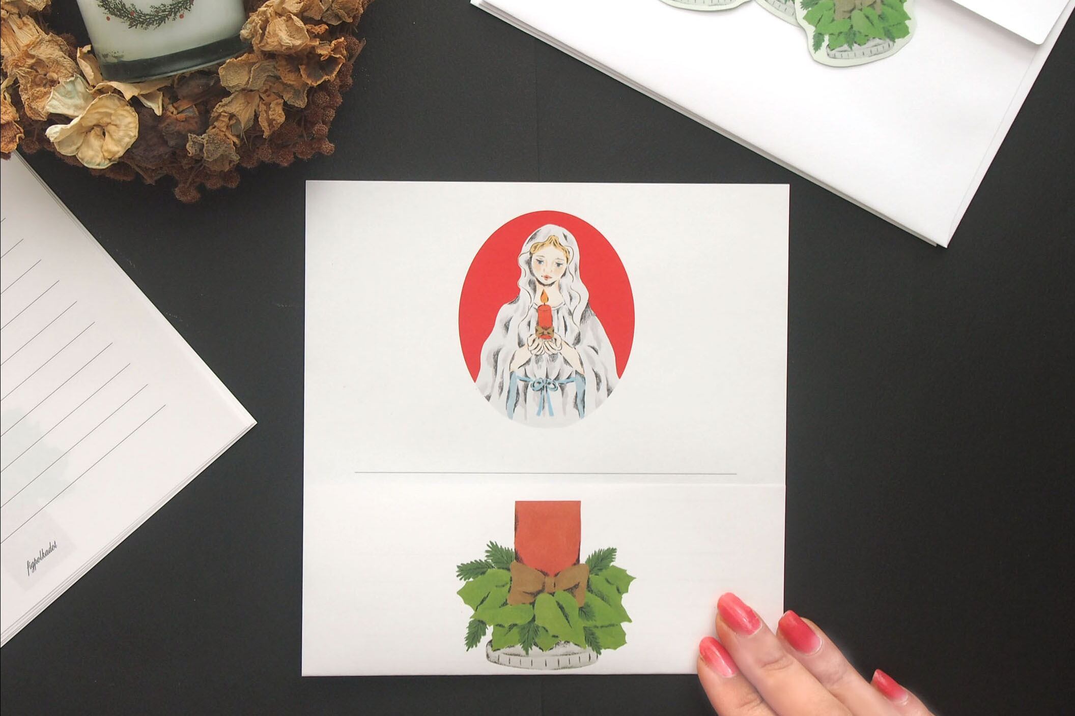 便箋を折るとあらわれるキャンドルに火をともし、