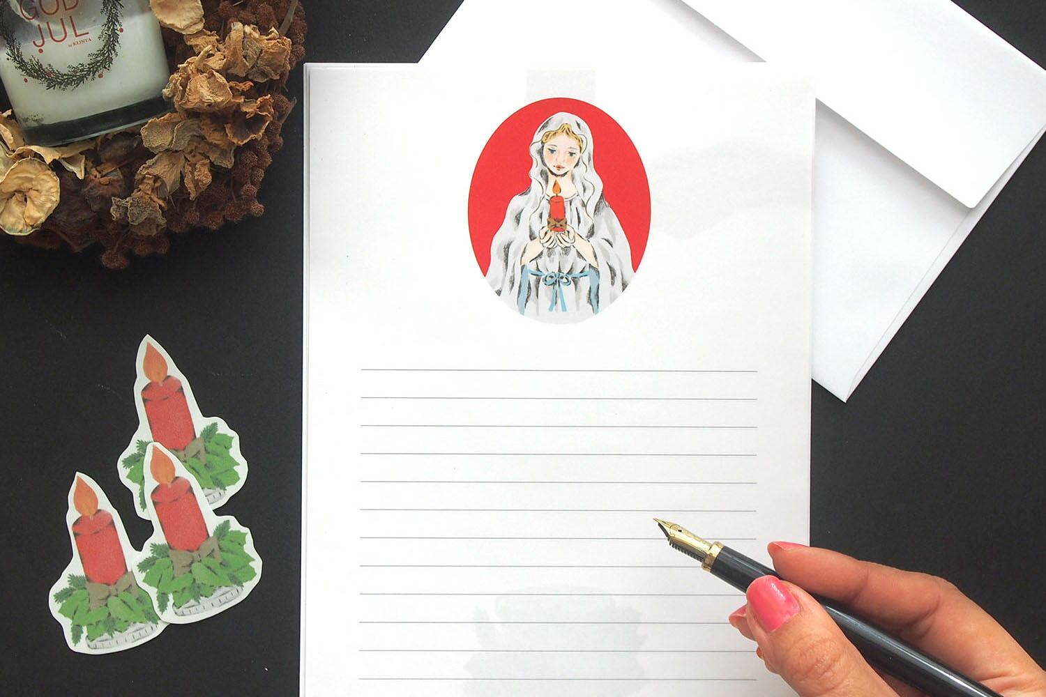 封筒とキャンドルのシールつきです。
